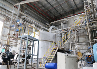 The virgin pulp bales are picked up from the warehouse and placed on loading belts and sent to the “pulpers” where the 100% virgin pulp is mixed with a lot of water to produce tissue-paper stock, which is sprayed onto screens of mesh to drain the water.